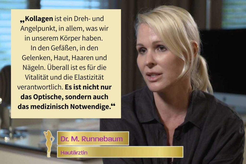 „Diese schnellen Erfolge sehen wir allerdings nur unter zwei wichtigen Voraussetzungen“, betont Dr. Runnebaum im TV-Beitrag. „Die Qualität des Kollagens ist absolut entscheidend – und man sollte das Kollagen wirklich täglich über ein paar Monate einnehmen.“