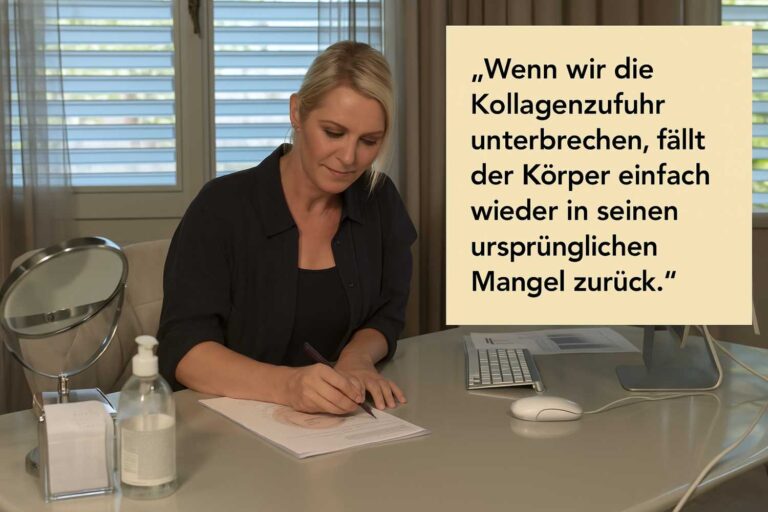 Die Dermatologin sieht in ihrer täglichen Praxis immer wieder das gleiche Muster: Patienten, die nach einer „erfolgreichen Kur“ das Kollagen absetzen, erleben binnen weniger Wochen einen deutlichen Rückfall – Falten kehren zurück, Gelenke schmerzen wieder.